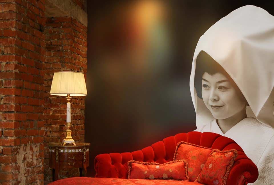 Custom printed corset-inspired window shades for a boutique hotel experience